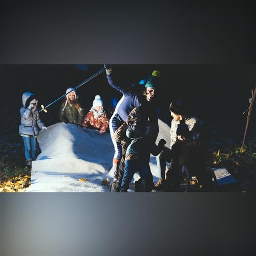 Pantomimická klauniáda pre všetky deti a ich rodičov, ktorí sa už nevedia dočkať, kedy poriadne nasneží a kedy prídu Vianoce. Dvaja náruživí lyžiari netrpezlivo čakajú na prvé snehové vločky – no keď snehu niet, treba si čas nejako skrátiť.